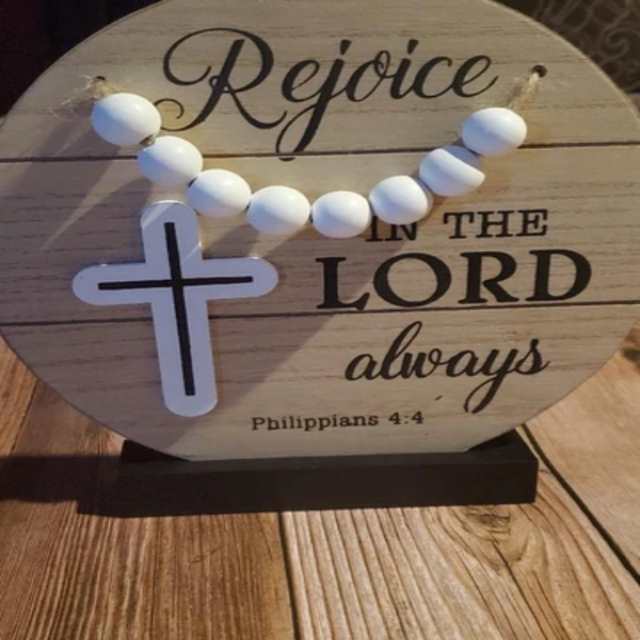 The message Rejoice in the Lord Always taken from the scripture Phillipians 4.4.
